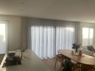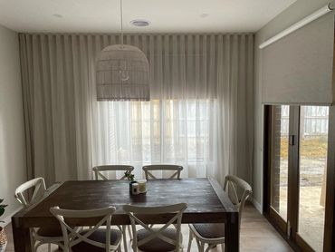 Paired together, a block out and sheer curtain will provide more versatility. Curtains can also be paired with blinds, such as roller blinds, allowing the range of benefits from both types of window furnishings while providing the perfect solution to privacy and light protection from the harsh Australian sun. We also offer motorisation, allowing you to control your blinds and curtains with just a click of a button!